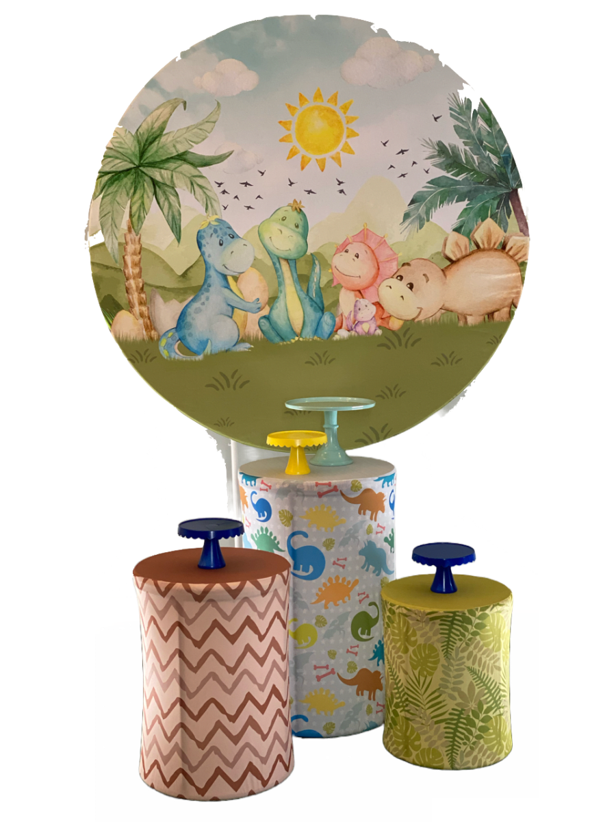 5Ft Round Backdrop and 3x pedestal cylinder