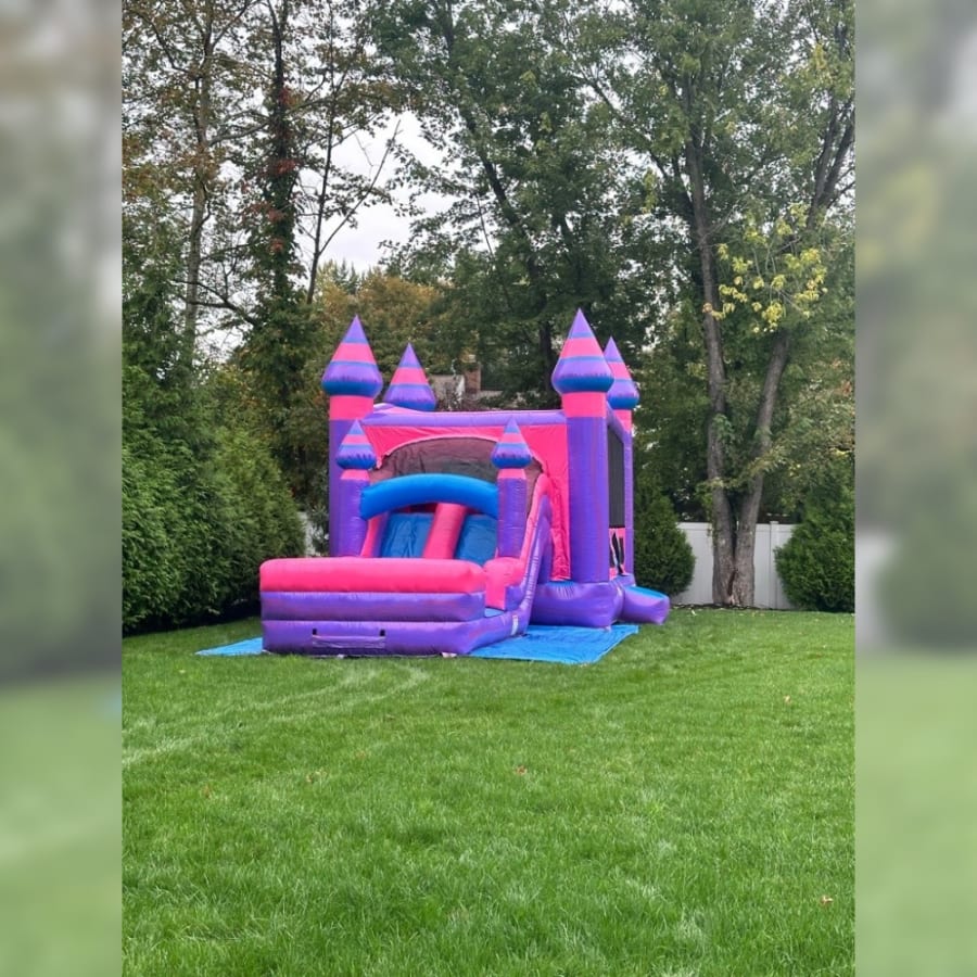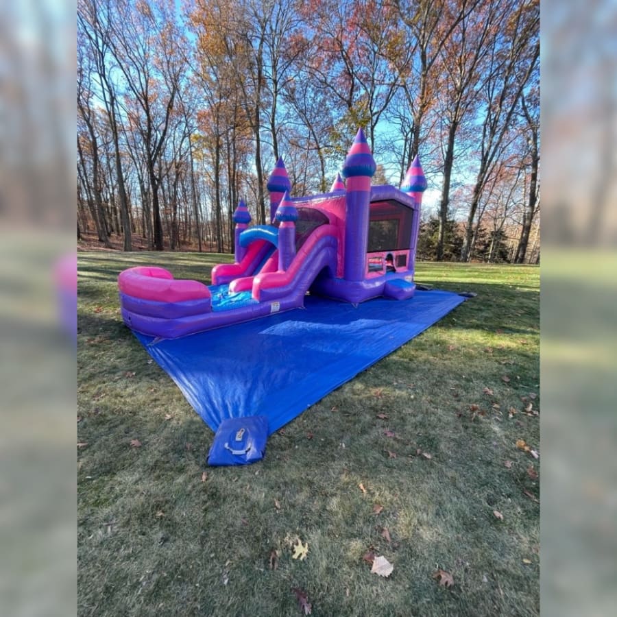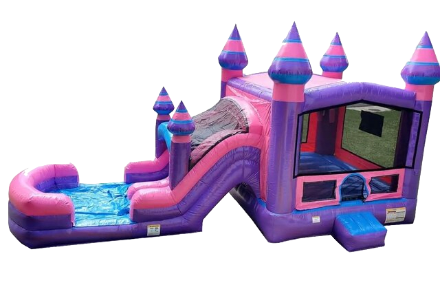 The Purplish Dual Slide Combo stands out with its vibrant purple and blue color scheme, making it a visually appealing addition to any event. Its compact size allows for easy setup in both indoor and outdoor spaces, ensuring that you can enjoy the fun no matter the location.