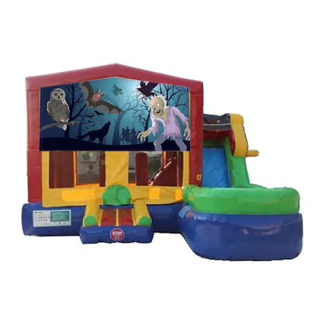 This eerie zombie and Halloween-themed modular panel is ideal for any autumn party or event that blends thrills with fun. Transform the appearance of your modular inflatable bounce house with our captivating Zombie Halloween Modular Art Banner!