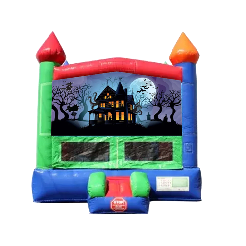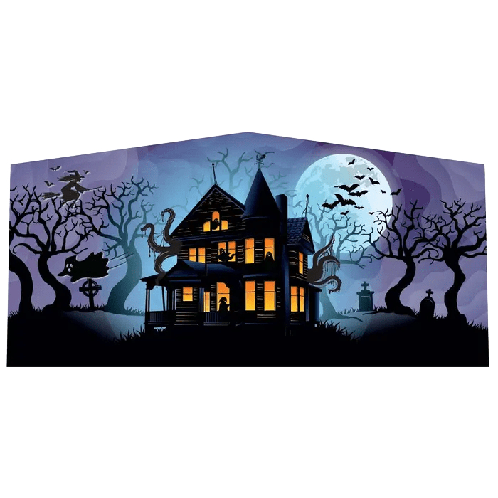 Who dares to step into a delightfully eerie bounce house featuring a spine-chilling Haunted House design? Transform your modular inflatable bounce house with a chilling Haunted House Art Banner for a truly spooky experience! These banners can be added to any Module Bounce House: