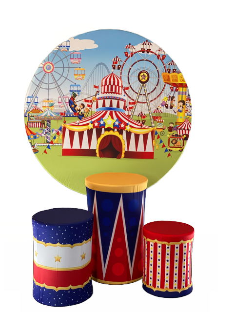 5Ft Round Backdrop and 3x pedestal cylinder
