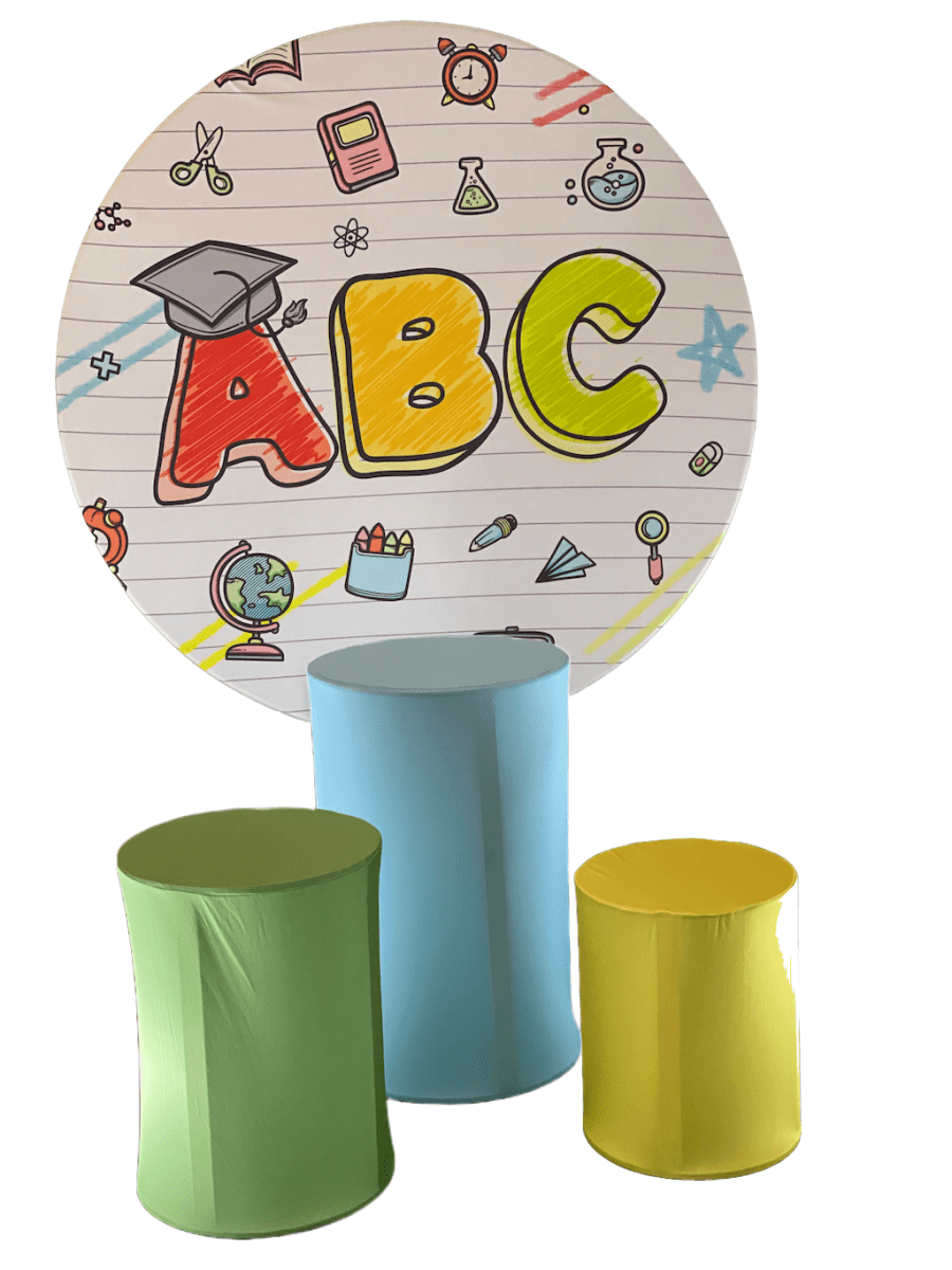 5Ft Round Backdrop and 3x pedestals cylinder