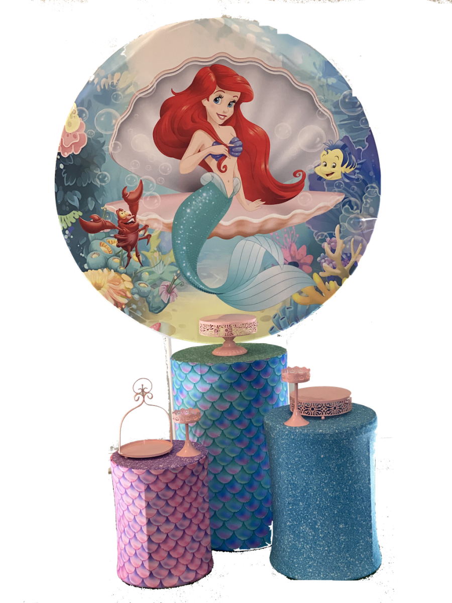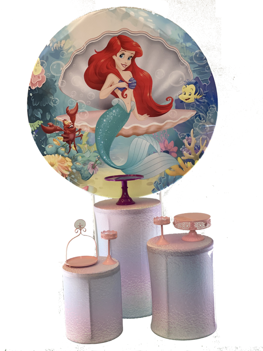 5Ft Round Backdrop and 3x pedestals cylinder
