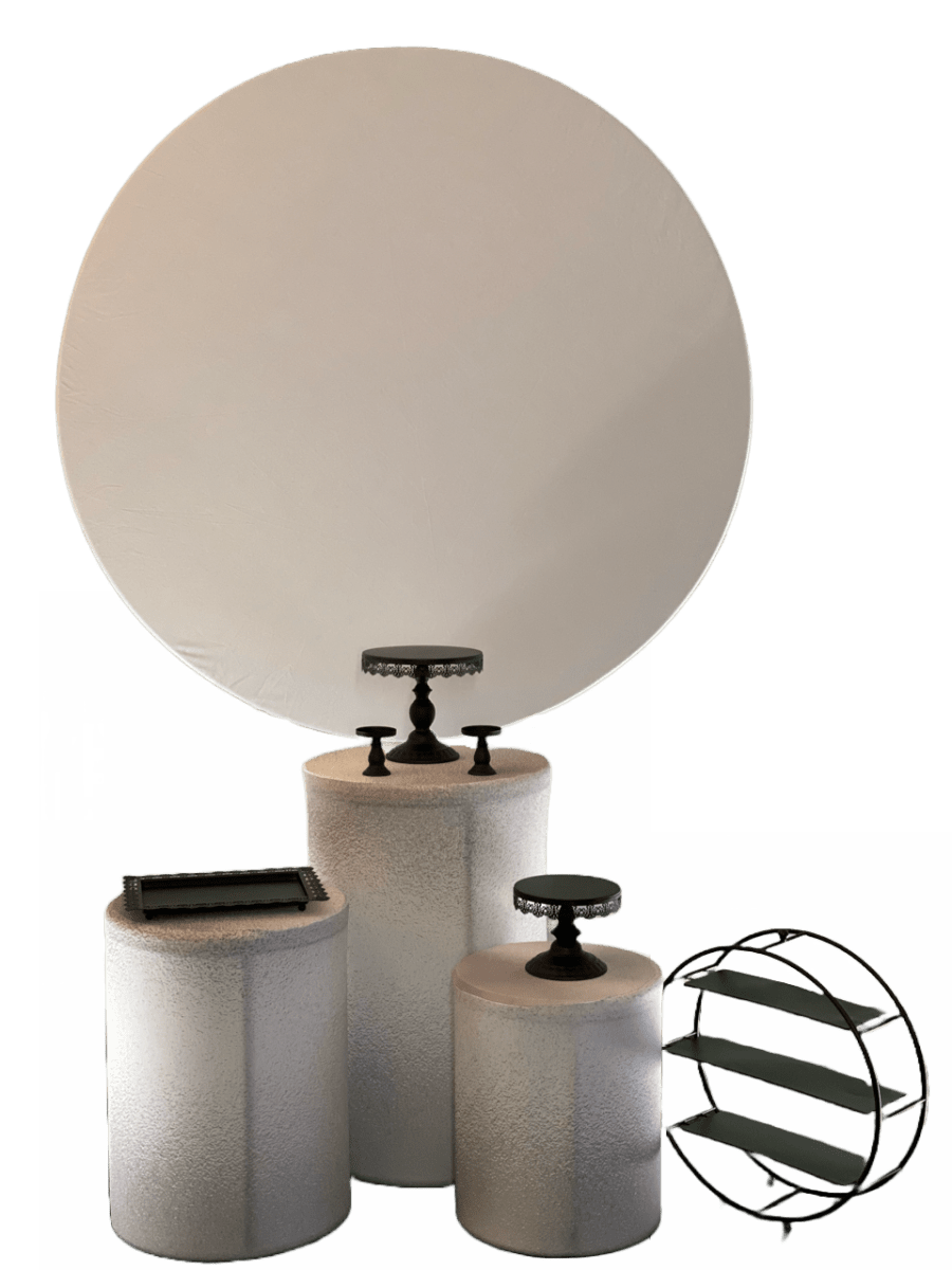 5Ft Round Backdrop and 3x pedestal cylinder