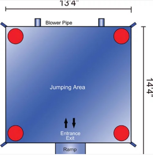 Inflated size: 13' x 13' + 2' Step x 13' High. -