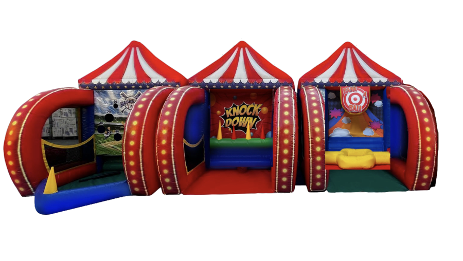 Perfect for younger guests, our vibrant blue and red carnival graphics will captivate and entertain for hours. With all the inflatables lined up side by side, your event will be the highlight of the season!