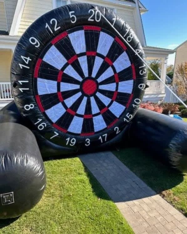 Soccer Darts is a thrilling inflatable game that combines the skills of soccer with the precision of darts. Players kick soccer balls at a giant dartboard, aiming to score as many points as possible. It's a test of accuracy, power, and finesse, making it perfect for players of all skill levels.