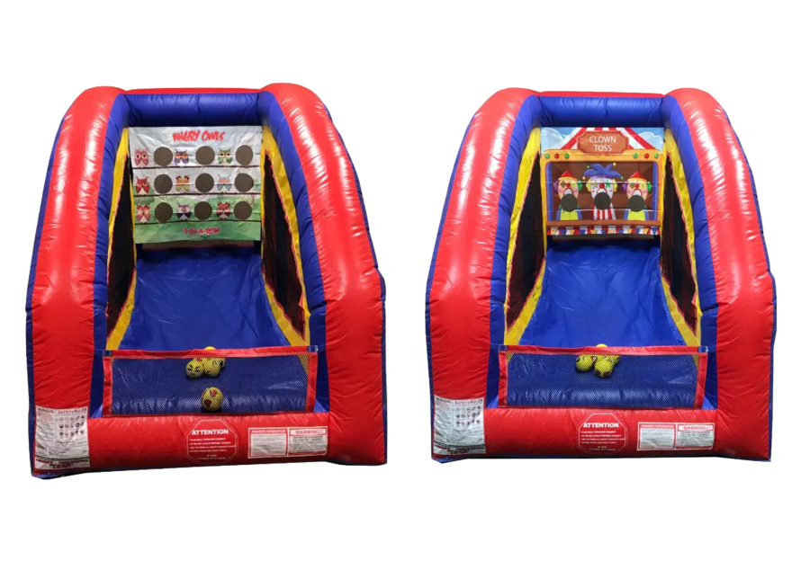 Each one is measured 8 feet long, 5 feet wide. 5'x8' - Shooting Game; 5'x8' - Tossing Game