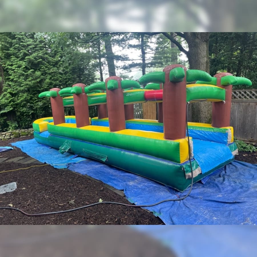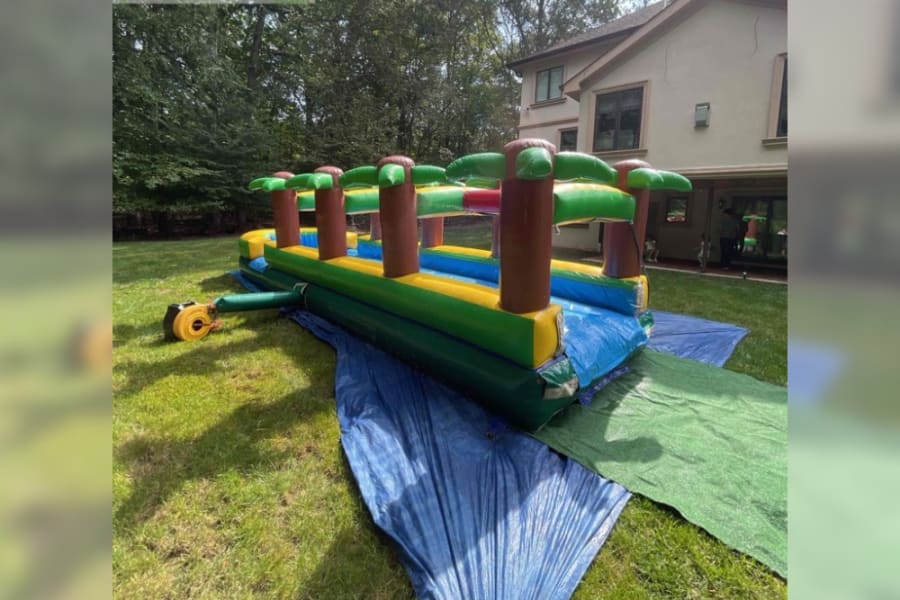 Rent a waterslide with the Palm Tree Slip n Slide, you can turn your backyard into a water park! Watch as your kids laugh and slide down the slippery surface, splashing into the pool at the end. The water sprinklers create a cool mist that adds to the excitement and keeps everyone refreshed on those hot summer days.